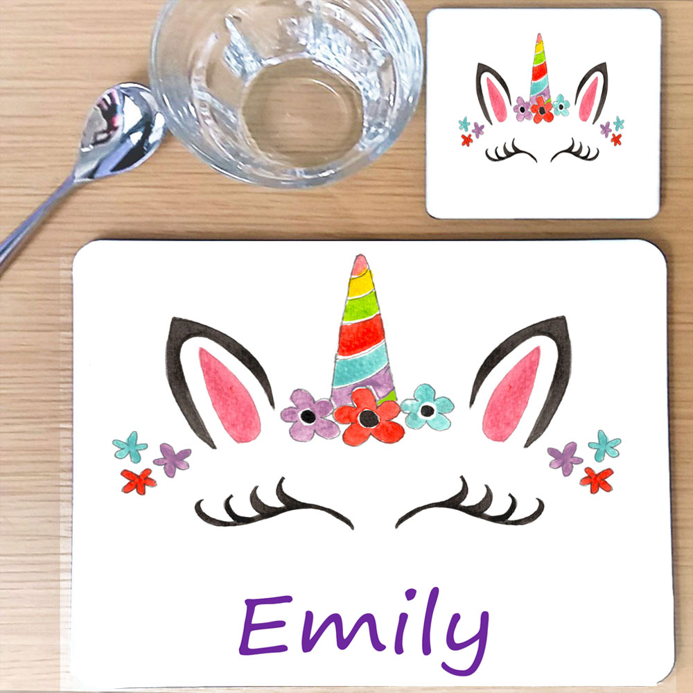 This pretty unicorn placemat will make mealtimes a lot more fun! This unicorn placemat is hand finished and designed in our design studio. You can add any name and special mealtime message to the front of the mat as they are all personalised to order. We have designed all the personalised placemats and so they are all unique gifts.